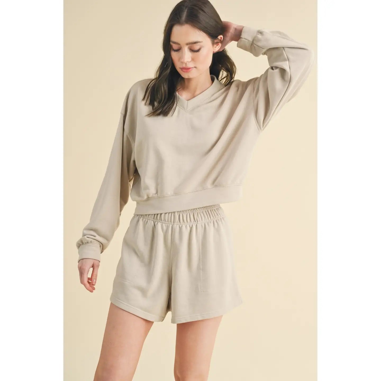 Crafted from soft washed French terry, this crop sweatshirt transitions seamlessly from active pursuits to everyday wear. The relaxed silhouette and cropped length make it ideal for layering post-workout or pairing with your favorite bottoms for casual errands. Versatile enough for the gym, court, or golf course—and polished enough to wear beyond. A wardrobe essential that bridges performance and style.