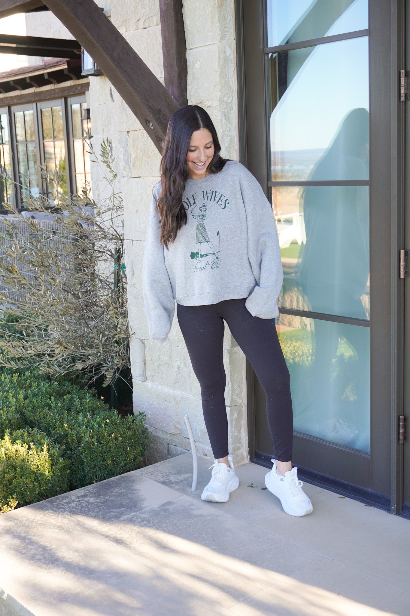 Perfect for those leisurely weekends when the course calls, this ultra-soft sweatshirt delivers comfort without compromise. Crafted from premium fabric that feels as good as it looks, it's your go-to layer for relaxed mornings, casual outings, or cozy evenings. Whether you're cheering from the sidelines or simply enjoying some well-deserved downtime, this piece combines effortless style with the kind of softness you'll want to reach for again and again. A wardrobe essential that understands the golf wives lifestyle.